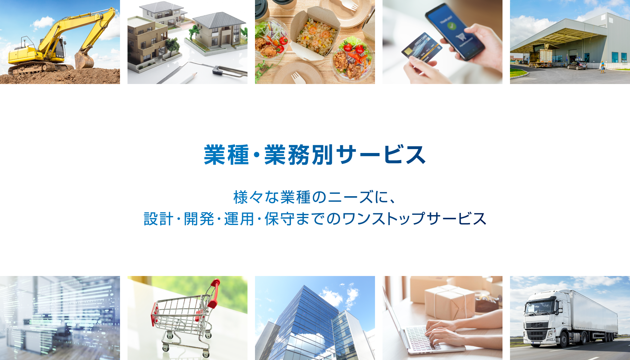 当社は、組織を業種別・業務別に構成するとともに、営業担当者やSEが担当する業種・業務に必要な専門知識を熟知し、その業界の管理者レベルの知識と経験を生かした業務システムをご提供いたします。