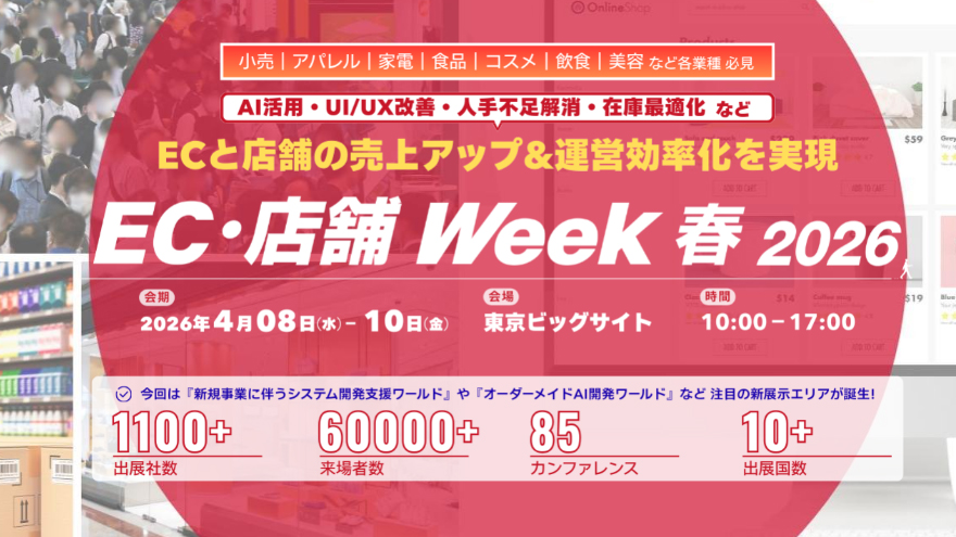 2026年4月8日(水)〜4月10日(金)まで東京ビックサイトにて開催の「EC店舗Week春2026」に出展いたします。