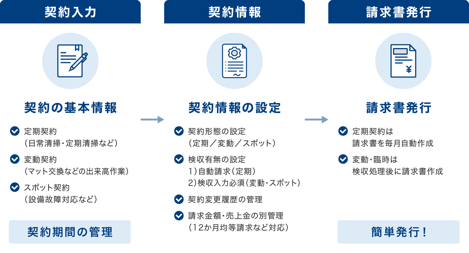 Billyでは、契約入力から請求書発行までを一連の流れで管理できます。