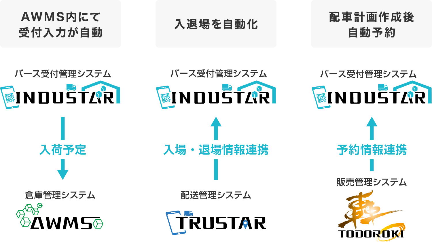 バースの事前予約・ドライバーの受付・バース誘導・荷待ちと荷役時間の集計など、小売り(TC)・卸(DC)に特化した業務サポートを行います。