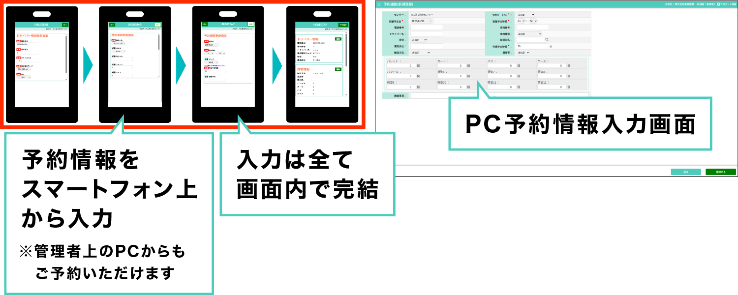 事前予約による物流センター内の待機時間削減が可能です。