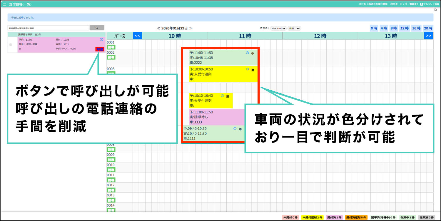画面からドライバーへバース誘導が可能!